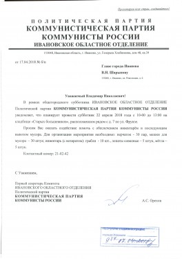 8 апреля 2019 года в городе Иваново создано отделение Политической партии КОММУНИСТЫ РОССИИ